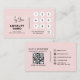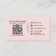 Keep your clients coming back with this Massage Therapist QR Code Pink Loyalty Card. Designed with a soft pink background, this card combines elegance with functionality. Featuring a scannable QR code, clients can easily track their visits, earn rewards, or access special offers. The modern, clean layout ensures your business stands out, while the customizable text allows you to add your logo, services, and loyalty program details. Perfect for massage therapists, spas, and wellness centers, this card is a convenient and stylish way to encourage repeat business.