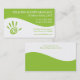 This green and white massage therapy business card features spiral hand print logo. To move/resize logo, or add/remove text fields, or change to another light background color, click on "Customize It." Feel free to contact me with any questions.