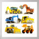 Six massive Diggers on one huge digger poster for kids! Great idea for your child or grandchild's big construction truck themed bedroom. Perfect for Interior designers who want to find something different for a kid's truck bedroom. Available in all sizes to suit your interior design brief. Kids love diggers! TruckStore for Trucks!