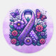 Stickers with a MCAS Warrior awareness ribbon in purple with white polka dots, flowers and butterflies.