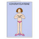 A simple illustration of a lady standing in pink panties and pink shoes with her hands covering the upper half of her body. The image has a pastel blue background and the word 'Congratulations' is written above the image.
