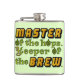 This "Les Miserables" inspired design for beer brewers says, "Master of the hops. Keeper of the brew" in a repeating pattern with a light green background. The words "master" and brew" are done in beer colors with bubbles. The rest is green, with the "o"s replaced by hops and part of the "K" replaced by a key. A great flask for a homebrewer or a brewmaster. Also available in our store as a pattern design. To change background color, click "Customize It --> Edit --> Background."