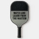 "Learn From the Master" pickleball paddle features a black diamond plate top and a silver bottom half. This pickleball paddle is perfect for master players who like to show off their skills.