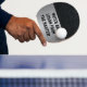 "Learn From the Master" ping pong paddle features a black diamond plate top and a silver bottom half. This ping paddle is perfect for master ping pong players who like to show off their skills.
