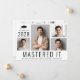Modern masters degree graduation announcement card featuring a 4 picture photo collage, "Mastered It" written in large capital letters and his or her class year, name and school or university in simple typography. On the reverse side, add an additional photo and a personalized message.