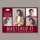 Modern burgundy red masters degree graduation announcement card featuring a 4 picture photo collage, "Mastered It" written in large white letters and the grad's class year, name and school or university in simple white typography. On the reverse side, add an additional photo and a personalized message.