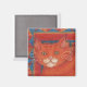 A marmalade tabby cat standing on a red, blue and yellow fish-themed mat. Design taken from 'Mat Cats' an original colored pencil drawing by jessperry.