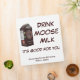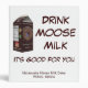 A milk carton from world famous and entirely mythical Matanuska Moose Milk dairy farm in Willow Alaska; not too far from Anchorage. The slogan "Drink Moose Milk, It's Good For You" also appears. The logo image features a milkmaid hand milking Matilda, the farm's first dairy moose. Believe it or not there are moose dairies; a small number in Russia and one in Sweden. Moose milk is commercially farmed in Russia. A farm-born moose calf is taken from its mother within 2–3 hours after birth and is raised by people. It is first bottle-fed with a milk substitute, and later fed from a bucket. The animals imprint and become attached to humans. The milk is high in butterfat (10%) and solids (21.5%), according to data collected on Russian moose; research into American moose milk is in a less advanced state than in Russia, but appears to indicate that American moose have even higher concentrations of solids in their milk. Moose milk is said to be a bit salty and bitter; with a hint of pine or spruce needles. Moose milk is commercially farmed in Russia. A farm-born moose calf is taken from its mother within 2–3 hours after birth and is raised by people. It is first bottle-fed with a milk substitute, and later fed from a bucket. The animals imprint and become attached to humans. As with dairy cattle, calves are removed from their mothers after a short time.The Russians say moose soon recognize the milkmaids as their substitute as her substitute calves. At this point they are released to the forest; but visit the farm every day to be milked during the lactation period (typically, until September or October). During winter the animals roam free throughout the surrounding forest. But they usually do not stray too far, but spend much of their time at nearby woodlots where trees are being cut, feeding on the byproducts of timber operations. And they know the farm as the place for a daily rations of oatmeal, and as a safe place to give birth to their young. One Russian sanitorium serves moose milk to residents in the belief that it helps them recover from disease or manage chronic illness more effectively. Some Russian researchers have recommended that moose milk could be used for the prevention of gastroenterological diseases in children. The Elk (Moose are called Elk in Europe) House (Älgens Hus) farm in Bjurholm, Sweden is believed to be the world's only producer of moose cheese. The cheese sells for about 500 dollars per pound. Algens Hus' restaurant offers moose-cheese dishes. Cheese plain with bread or biscuits, or better yet, frozen moose mousse. Best served with raspberries.
