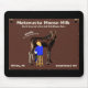 An old, wooden sign from the world famous and entirely mythical Matanuska Moose Milk dairy farm in Willow Alaska; not too far from Anchorage. The image features a milkmaid hand milking Matilda, the farm's first dairy moose. Choose your background color. Believe it or not there are moose dairies; a small number in Russia and one in Sweden. Moose milk is commercially farmed in Russia. A farm-born moose calf is taken from its mother within 2–3 hours after birth and is raised by people. It is first bottle-fed with a milk substitute, and later fed from a bucket. The animals imprint and become attached to humans. The milk is high in butterfat (10%) and solids (21.5%), according to data collected on Russian moose; research into American moose milk is in a less advanced state than in Russia, but appears to indicate that American moose have even higher concentrations of solids in their milk. Moose milk is said to be a bit salty and bitter; with a hint of pine or spruce needles. Moose milk is commercially farmed in Russia. A farm-born moose calf is taken from its mother within 2–3 hours after birth and is raised by people. It is first bottle-fed with a milk substitute, and later fed from a bucket. The animals imprint and become attached to humans. As with dairy cattle, calves are removed from their mothers after a short time.The Russians say moose soon recognize the milkmaids as their substitute as her substitute calves. At this point they are released to the forest; but visit the farm every day to be milked during the lactation period (typically, until September or October). During winter the animals roam free throughout the surrounding forest. But they usually do not stray too far, but spend much of their time at nearby woodlots where trees are being cut, feeding on the byproducts of timber operations. And they know the farm as the place for a daily rations of oatmeal, and as a safe place to give birth to their young. One Russian sanitorium serves moose milk to residents in the belief that it helps them recover from disease or manage chronic illness more effectively. Some Russian researchers have recommended that moose milk could be used for the prevention of gastroenterological diseases in children. The Elk (Moose are called Elk in Europe) House (Älgens Hus) farm in Bjurholm, Sweden is believed to be the world's only producer of moose cheese. The cheese sells for about 500 dollars per pound. Algens Hus' restaurant offers moose-cheese dishes. Cheese plain with bread or biscuits, or better yet, frozen moose mousse. Best served with raspberries.