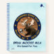 From world famous and entirely mythical Matanuska Moose Milk dairy farm in Willow Alaska; not too far from Anchorage. A bull moose (Alces alces) holds a glass of fresh moose milk. The moose is surrounded by a circular banner with the blue and yellow of Alaska's state flag. Text reading, "MATANUSKA MOOSE MILK", "WILLOW, AK", and "ESTD 1957", appear on the banner. Two customizable lines of text reading, "DRINK MOOSE MILK" and "It's Good For You." appear below the banner. You may change both the font and color of this text.