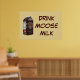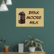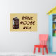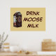A milk carton from world famous and entirely mythical Matanuska Moose Milk dairy farm in Willow Alaska; not too far from Anchorage. The slogan "Drink Moose Milk" also appears. The logo image features a milkmaid hand milking Matilda, the farm's first dairy moose. Believe it or not there are moose dairies; a small number in Russia and one in Sweden. Moose milk is commercially farmed in Russia. A farm-born moose calf is taken from its mother within 2–3 hours after birth and is raised by people. It is first bottle-fed with a milk substitute, and later fed from a bucket. The animals imprint and become attached to humans. The milk is high in butterfat (10%) and solids (21.5%), according to data collected on Russian moose; research into American moose milk is in a less advanced state than in Russia, but appears to indicate that American moose have even higher concentrations of solids in their milk. Moose milk is said to be a bit salty and bitter; with a hint of pine or spruce needles. Moose milk is commercially farmed in Russia. A farm-born moose calf is taken from its mother within 2–3 hours after birth and is raised by people. It is first bottle-fed with a milk substitute, and later fed from a bucket. The animals imprint and become attached to humans. As with dairy cattle, calves are removed from their mothers after a short time.The Russians say moose soon recognize the milkmaids as their substitute as her substitute calves. At this point they are released to the forest; but visit the farm every day to be milked during the lactation period (typically, until September or October). During winter the animals roam free throughout the surrounding forest. But they usually do not stray too far, but spend much of their time at nearby woodlots where trees are being cut, feeding on the byproducts of timber operations. And they know the farm as the place for a daily rations of oatmeal, and as a safe place to give birth to their young. One Russian sanitorium serves moose milk to residents in the belief that it helps them recover from disease or manage chronic illness more effectively. Some Russian researchers have recommended that moose milk could be used for the prevention of gastroenterological diseases in children. The Elk (Moose are called Elk in Europe) House (Älgens Hus) farm in Bjurholm, Sweden is believed to be the world's only producer of moose cheese. The cheese sells for about 500 dollars per pound. Algens Hus' restaurant offers moose-cheese dishes. Cheese plain with bread or biscuits, or better yet, frozen moose mousse. Best served with raspberries.
