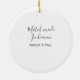 Lightweight, smooth, pure white ornament with nice sheen. Perfect size to be seen from across the room ... and to attract closer inspection! Price was great for ordering enough for the whole family! Clear, bold black design just as requested. Matches the order exactly. Just so nice!