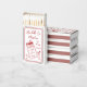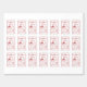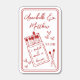 At the top of the sticker, the bride and groom’s names appear in elegant red script, while the wedding date is placed nearby for a balanced look. Two simple red frame lines border the edge of the sticker, giving it a clean and classic finish. Fully customizable, you can adjust the fonts, wording, shades of red, and heart details to perfectly complement your wedding style.