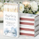 Match Made In Heaven Wedding Matchbox Favor. Add a touch of simple elegance to your celebration with this dreamy, romantic design displayed on one side of the matchbox. “Match Made In Heaven” appears in graceful handwritten script calligraphy, paired with an elegant serif font featuring the bride and groom’s names and wedding date below in a chic blend of soft gray and blue tones.