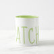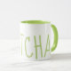 Matcha green text and inside mug