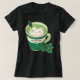 This "Tea-shirt" features a smiling matcha tea with cat-foam art. The cat has pink blush and the cutest pink ears. This design also features a tea leaf at the bottom right-hand corner, and another single tea leaf floating in the matcha. This is ideal for the matcha tea lover.
