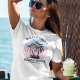 Capture the essence of seaside serenity with this custom family name beach house t-shirt. This unique design features a charming palm tree silhouette set against a distressed retro sunset, evoking the timeless allure of coastal sunsets. Personalize it with your family name and the location of your cherished beach house, making each shirt a bespoke reminder of sun-soaked days and breezy evenings. Ideal for your annual family vacation or as a distinctive touch to your vacation home wardrobe, this t-shirt is more than just apparel - it’s a wearable memory of your family’s blissful beachside moments.