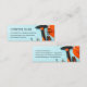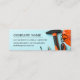 A vibrant mini business card featuring a matching set of professional carpentry tools with a turquoise blue backdrop. It features a spot for your unique company name and information, in addition to a place to upload your own company logo. On the reverse side is space for your services offered in bullet points.
