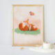 "The strength of motherhood is greater than natural laws". A sweet and tender moment between a mother fox and her cub The colors are pastel and look like a watercolor painting. This print will brighten up any kid's bedroom or playroom. Can be personalized with your child's name.