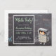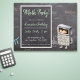 The background of the invitation simulates a grey chalkboard where mathematic formulas, equations and symbols had been hand written in blue, pink, white, yellow and green colors. All the information for the party appears in a clear rectangle at the front. You can personalize all the text and even change the font, colors and sizes. To complete the design there is a little kid inside a calculator costume. Isn’t it cute?