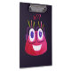 Cute math clipboard with a watercolor drawing of a geeky pink candy character with eyeglasses who loves mathematics and particularly equation solving. This cute algebra clipboard will make a great math gift for clever kids who love math.