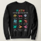 Playful math artwork with plus, minus, times, divide, equals, percent, greater than, less than and not equal. A friendly learning themed layout that shows how math concepts stay in balance. Great for teachers and students.