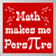 Humorous Math Makes me PersPIre saying with the Pi symbol in place of the Pi letters on a red background. Unique, Pi phrase for Pi day! Have a Happy Pi Day, 3-14 (March 14th) for the approximate Pi value of 3.14. Creative Pi Humor for the Math Lover, Math Student, Math Teacher or anyone that Mathematically celebrates Pi!