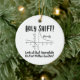 Lightweight, smooth, pure white ornament with nice sheen. Perfect size to be seen from across the room ... and to attract closer inspection! Price was great for ordering enough for the whole family! Clear, bold black design just as requested. Matches the order exactly. Just so nice!