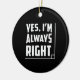 Lightweight, smooth, pure white ornament with nice sheen. Perfect size to be seen from across the room ... and to attract closer inspection! Price was great for ordering enough for the whole family! Clear, bold black design just as requested. Matches the order exactly. Just so nice!