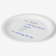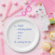 I ordered personalized baby shower plates and I loved them and they were delivered on time they were personalized with thanks for showering our little peanut. The printing turned out good but edge of plates had like tears around the edges I would recommend them to any one having a baby shower or party