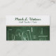 Math teacher's business card, with a photograph of a green chalk board showing math equations. Customize text on front and back to suit your individual needs. Change text style, color, size, and add more text fields too, if you want.