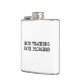 Well made flask, a little better than I had expected. Flask came in clear plastic box which gave it a nice presentation when I took it out of the zazzle packaging. Image is not printed on flask but on sticker. Don't know how this will hold up I haven't used it yet. This would make a Great gift! I plan to purchase more for friends! Cheers. I thought a little brighter than computer. Very crisp, writing wasn't