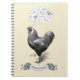 Are you a mathematician who likes farm animals, specifically chickens? So there's this chicken who can do math like an animal! Here's a vintage picture of her on this spiral notebook, and the mathematics and chicken scratchings of equations she's doing in her head are in the thought bubble on top. Below is an old fashioned looking ribbon label that says "Mathemachicken," making this look like a kind of weird flyer for a circus act. But it's only a math pun in a math joke, the kind a funny math teacher might tell in class.