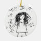 Lightweight, smooth, pure white ornament with nice sheen. Perfect size to be seen from across the room ... and to attract closer inspection! Price was great for ordering enough for the whole family! Clear, bold black design just as requested. Matches the order exactly. Just so nice!