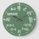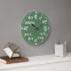 This fun and whimsical custom wall clock is perfect for math lovers. Test your arithmetic! The clock has mathematical equations instead of numbers. There is some addition, subtraction, multiplication, division, percentages, fractions, algebra, square root, and powers. This second version of the clock also has a factorial and cube root. They look like white chalk written on a green chalkboard.