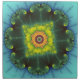Colorful zoom of the famous Mandelbrot fractal. Beautiful round shape with blue, green and yellow/orange colors.
