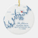 Celebrate your first Christmas as a married couple with this elegant navy blue Mattapoisett, MA wedding keepsake ornament. Featuring a refined coastal New England map design, this personalized ornament includes your names, wedding date, and a cherished wedding photo on the back. Perfect for weddings at The Inn on Shipyard Park, Mattapoisett Boatyard, Bay Club at Mattapoisett, and Shining Tides Weddings By the Sea. Artwork by Coastal Map Designs