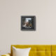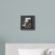 Matte black memorial peel and stick wall tile featuring a photo of your loved one along with their name in a bold, modern script and their years living. Photo memorial peel and stick wall tile to which you can a photo of your loved one who's passed away along with his name and years living. In loving memory is written in white above the photo and beneath it, his name and date of birth and date of passing. Honor your loved one who's passed away with this photo peel and stick wall tile personalized with a photo of your husband, father, or grandfather and custom text in white against a matte black background.