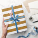 Wrapping paper with a matte gold and white stripe pattern. Perfect for any occasion. Customizable.