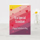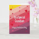 This Valentine's Day card shows a bright background made of wide diagonal stripes that fade from sunny yellow in the top left into peach and pink, then into deeper magenta and purplish red toward the bottom right. A light speckled texture sits over the colors, giving the surface a soft, slightly painted look. Small hearts are scattered across the card in different sizes, with some in classic red and others in pale pink, like a gentle sprinkle of love. In the center, the message is written in white letters that stand out clearly against the warm colors. “To a Special Grandson” appears first in a rounded, simple letter style, with “Happy Valentine’s Day” placed just below it in a flowing cursive look. The layout feels thoughtful and easy to read, and it makes the message feel direct and caring. It’s a meaningful card to give because it combines a warm family message with a sweet, romantic holiday feel ❤️🥰.