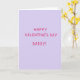 This card features a simple message on a soft lavender background that feels calm and loving. In the center, the text reads “HAPPY VALENTINE’S DAY DADDY!” in bright magenta letters. The lettering looks like a child wrote it, with slightly uneven shapes that make it feel sweet and sincere. The words are all in capital letters, and the exclamation mark at the end adds a burst of excitement. With no other pictures or objects, your eyes go straight to the message, which makes it feel honest and direct 🥰. The gentle purple and strong magenta together give it a warm, cheerful look without being too much. It’s a meaningful card to give because it says “I love you” in a simple way that can feel especially touching between a child and a dad ❤️.