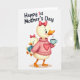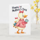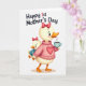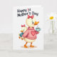 This card features two sweet bird characters on a white background, cuddled close in a quiet, affectionate pose that feels like a gentle hug ❤️. The larger bird wears a pink bow, a soft blush on its cheeks, and a salmon-colored sweater with a deep pink heart on the chest, leaning slightly toward the smaller one as if sharing warmth. In one wing it holds a teal cup with steam curling upward, adding a cozy, just-made moment to the scene. The smaller bird, also with a tiny pink bow, nestles in and wears a cerulean-blue sweater, looking snug and cared for beside the bigger figure. Their orange beaks and webbed feet add a cheerful pop of color that balances the softer tones. Centered above them, the text reads “Happy 1st Mother’s Day” in a flowing dark tone, with “1st” standing out in bright red 🌼. The lighting is soft and diffused, keeping the focus on their close embrace and the little details. The teal cup sits near the larger bird’s chest, with thin steam lines rising in gentle curves.