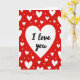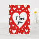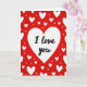This card shows a deep red background filled with many small white hearts scattered around, some partly cut off at the edges. In the center, there’s one large white heart that stands out right away. Inside that big heart, the words “I love you” appear in black, with a casual, hand-drawn look. The message sits right in the middle, making it the main focus of the design. The strong red-and-white contrast keeps the card easy to read and very romantic. The little hearts around the center make it feel like love is all around, not just in one spot. It’s a simple, sweet design that works for a partner or someone you care about 💘