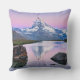 Photo throw pillow cushion with the reflection of the mighty Matterhorn mountain in the still water of Stellisee lake high in the Alps above Zermatt, Switzerland at sunrise.