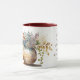 Christian inspirational quote scripture coffee mug depicts a beautiful Boho floral vase. It features Bible Verse Matthew 11:28, Jesus said, “Come to me all who are weary and burdened, I will give you rest."