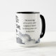 Inspirational custom coffee mug depicts a beautiful nature landscape with mountains and trees. It features Bible Verse Matthew 13:11, "The knowledge of the secrets of the Kingdom of Heaven has been given to you."