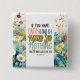 Button with inspirational quote Christian scripture features a portion of Bible Verse Matthew 17:20, in the words of Jesus, "If you have faith as small as a mustard seed, nothing will be impossible for you.” It is framed with beautiful floral watercolor art including simple white, pink and yellow wild flowers on a blue background.