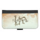 Inspirational Christian scripture iPhone Wallet Case depicts a light blue and brown vintage abstract background. It features Bible Verse Matthew 19:26, "With God all things are possible."