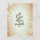 Inspirational Christian scripture postcard depicts a light blue and brown vintage abstract background. It features Bible Verse Matthew 19:26, "With God all things are possible."*