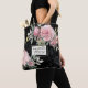 Inspirational scripture tote bag depicts beautiful watercolor blush, pink flowers and greenery with a black background. It features the words of Jesus in a portion of Bible Verse Matthew 28:20, "I Am with You Always."_